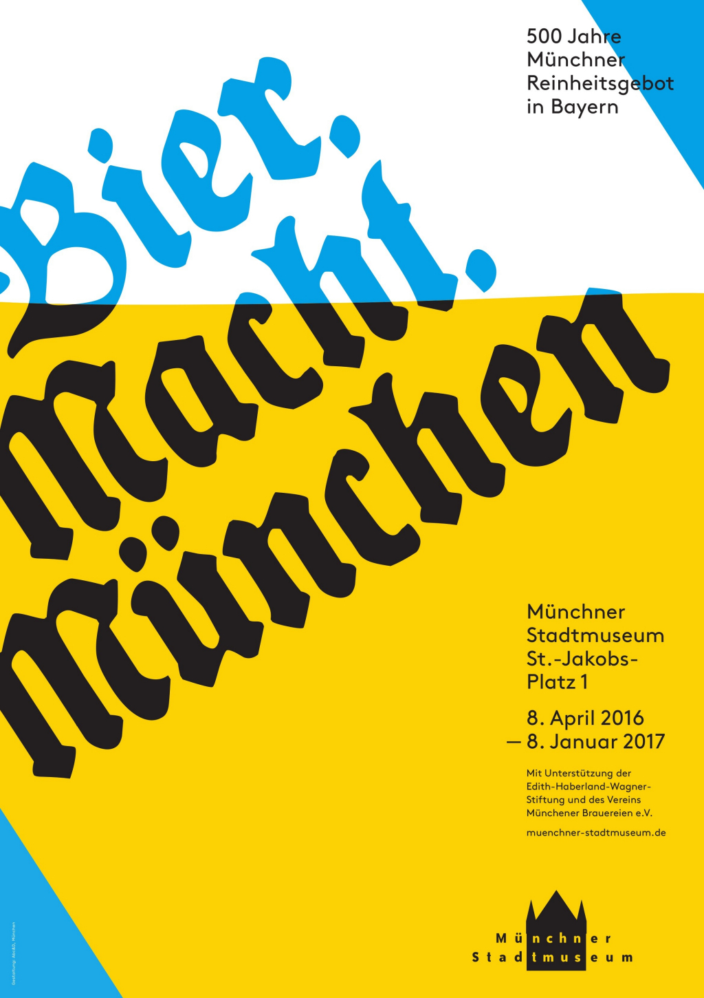 BIER.MACHT.MÜNCHEN Münchner Stadtmuseum 8. April 2016 bis 8. Januar 2017 St.-Jakobs-Platz 1 80331 München Tel. 089 233-22370 E-Mail: stadtmuseum@muenchen.de Internet: www.muenchner-stadtmuseum.de Öffnungszeiten: Dienstag bis Sonntag 10 bis 18 Uhr Eintrittspreise: 7 € (gesamtes Haus) bzw. 4 € (Dauerausstellungen); ermäßigt 3,50 € bzw. 2 €, Personen unter 8 Jahren Eintritt frei 500 Jahre Reinheitsgebot in Bayern. Das Münchner Stadtmuseum widmet sich 2016 diesem Jubiläum mit eigenen Schwerpunkten: dem Münchner Bier und seinen Brauereien. Die Ausstellung wird ein komplexes historisches Thema in seiner Relevanz für die Gegenwart zeigen und dabei völlig neue Blicke auf das Phänomen Bier eröffnen. Dabei wird am Beispiel der Entwicklung der Brauereien die im internationalen Vergleich späte Industrialisierung Münchens seit 1850 gezeigt werden. Das günstige Zusammenwirken von Kapital, Unternehmertum und wissenschaftlichen Erkenntnissen zum Brauvorgang an sich sowie technische Fortschritte werden erklärt und dargestellt. BIER.MACHT.MÜNCHEN spürt dem Einfluss des Gerstensaftes auf die Entwicklung der Stadtkultur, in den bildenden Künsten, den Festen und des Kabaretts nach und beschäftigt sich daher eingehend mit der Rolle des Bieres in Gesellschaft und Politik. Die Ausstellung wird auf einer Fläche von 800 Quadratmetern ca. 700 Exponate zeigen. Darüber hinaus wird sie von einem umfassenden Rahmenprogramm und einem reich bebildertem Katalog begleitet. |