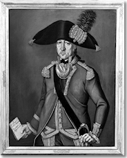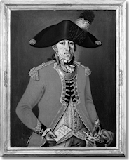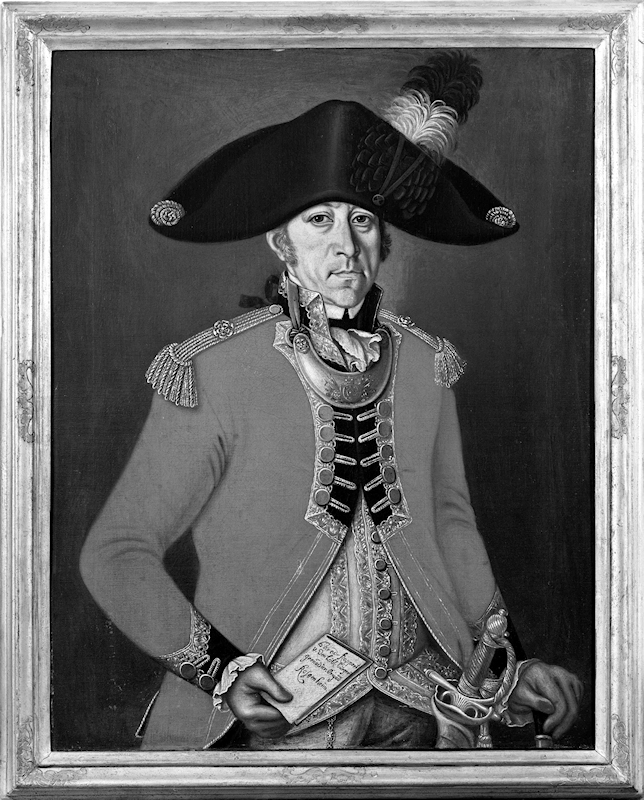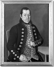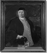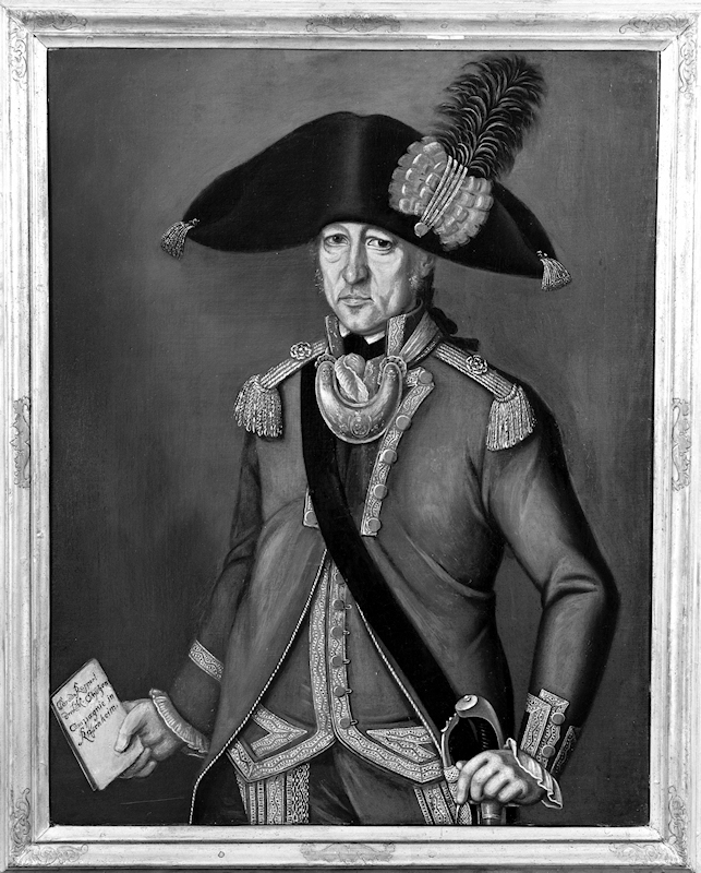 der Schützenkompanie; in seiner rechten Hand das Rapportbuch