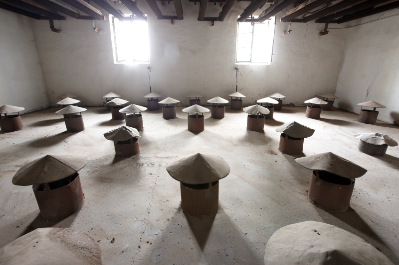 - sie bindet original erhaltene Einrichtungen und Großgeräte ein wie das alte Sudhaus, die „Sau“ und die Darre,