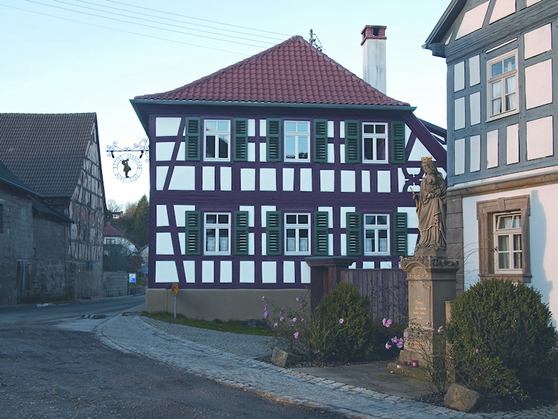 rooms on the first floor and under the roof. The menu offers "kitchen art, Franconian style". The inn consistently procures the