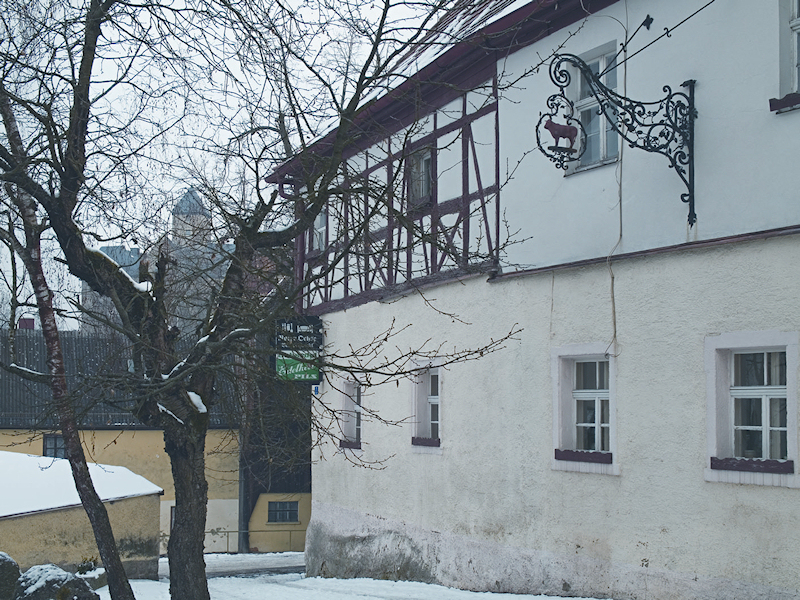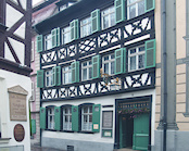 with its listed timbered façade largely dates back to the time around 1450. The back yard contains the brewery, built in 1742,