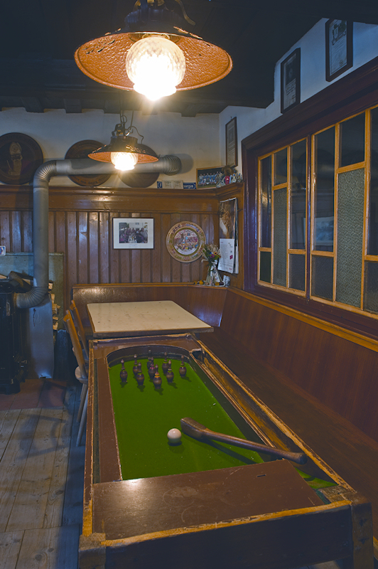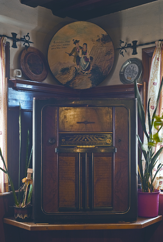 Unter den verschiedenen, allesamt erwähnenswerten Ausstattungsstücken seien hervorgehoben der einfache, nach wie vor seiner eigentlichen Bestimmung nachkommende Holzofen von 1946/48, eine seinerzeit den modernsten Stand der Technik verkörpernde Radio- und Plattenapparatur der Firma Loewe Opta aus dem Jahr 1948 – durch einen geschickten Fallmechanismus konnten mehrere Schallplatten hintereinander abgespielt werden – sowie eine Tischkegelbahn aus der Zeit um 1870. Hergestellt wurde diese für ein bayerisches Wirtshaus wohl einmalige Kuriosität, die sich unter einer abnehmbaren Tischplatte verbirgt und noch immer funktionsfähig ist, von einem französischen Soldaten, der aus unbekannten Gründen hier in Münchham hängengeblieben war.