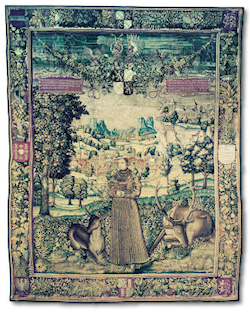 Bildnisteppich gehört zu einer dreiteiligen Teppichfolge