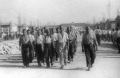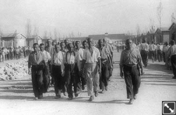 Lagerstraße zum Appellplatz. Nach der Arbeit und dem Abendappell