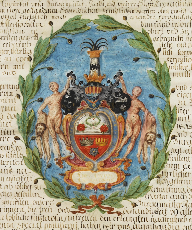 Das neue Kronacher Stadtwappen von 1651, Urkunde (Detail),