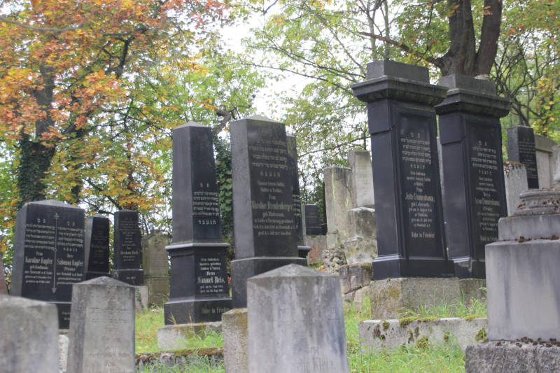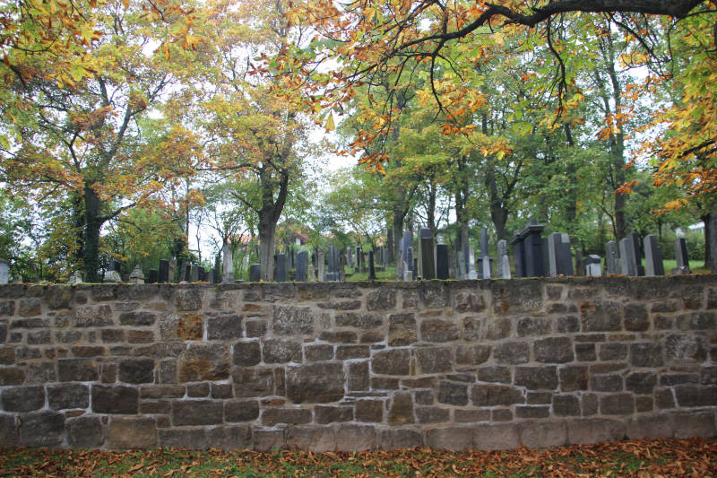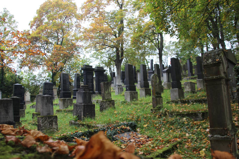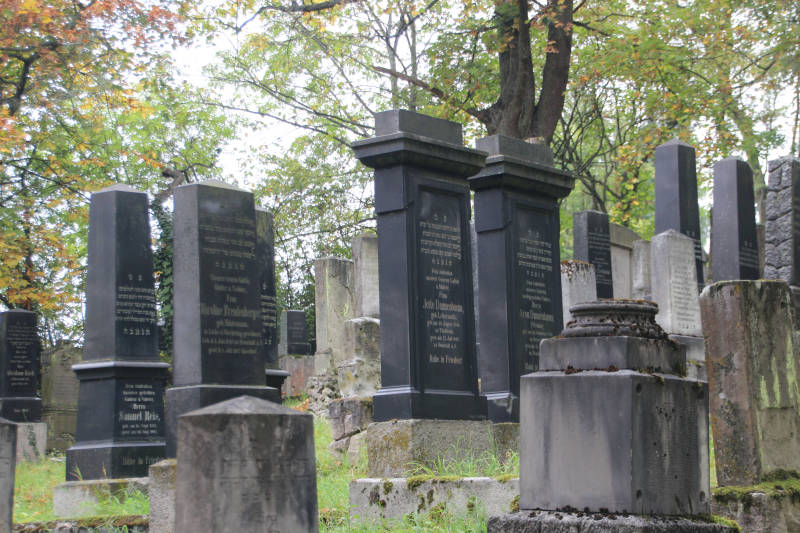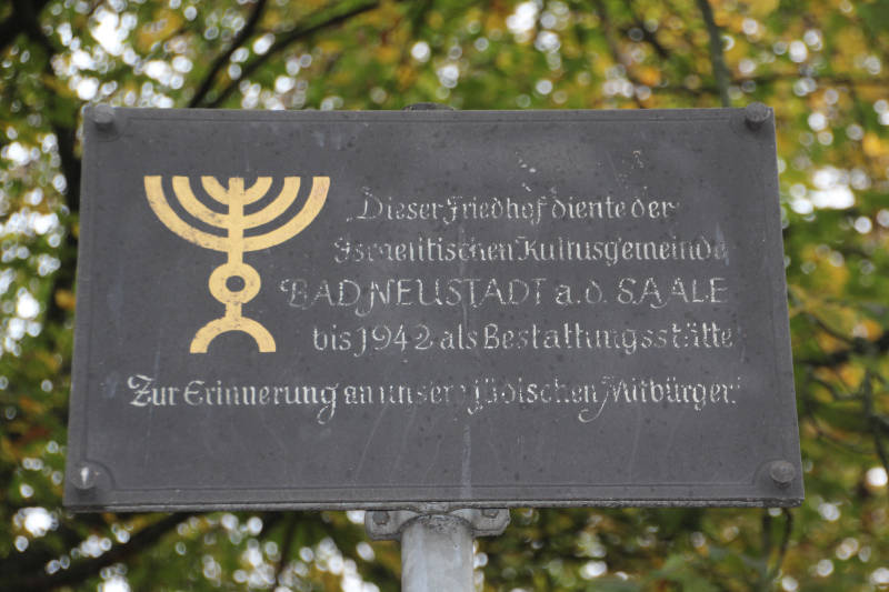 | Beerdigungen: Sehr viele neue und nur wenige alte Grabsteine. Der Friedhof diente den Juden von Bad Neustadt bis 1942 als Begräbnisstätte. Bis dahin war der westliche Teil weitgehend, der östlich noch nicht belegt. |