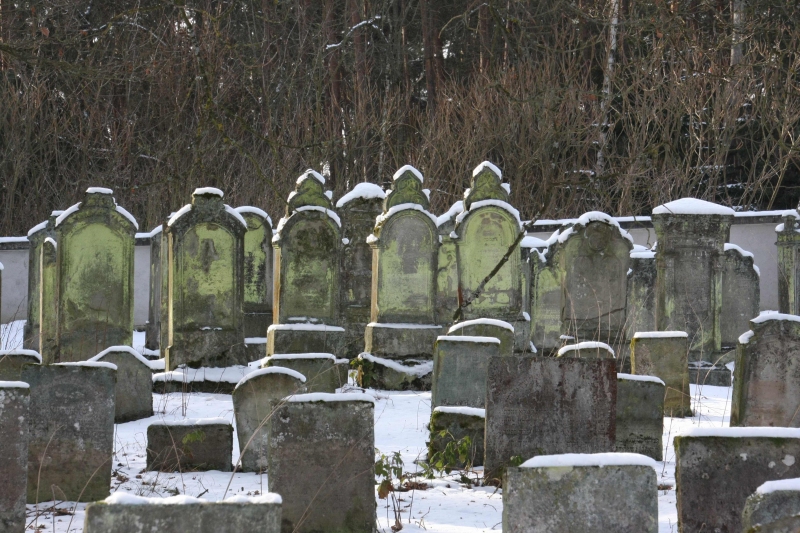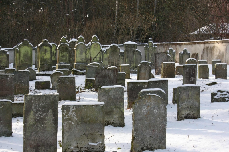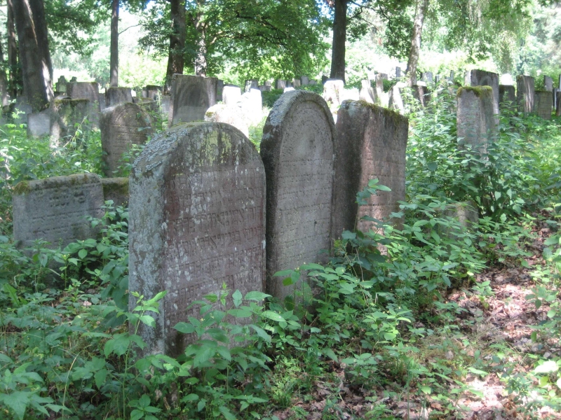 | Beerdigungen: Mehr als 8000 Menschen fanden auf dem Friedhof ihre letzte Ruhestätte. Der älteste Grabstein (Reb Jacob ben Izchak) stammt aus dem Jahr 1603. Nach einer Vermessung vom November 2006 existieren noch 2223 stehende Grabsteine, darunter mehrere Rabbinergrüber. Viele sehr alte Grabsteine befinden sich auf der linken Friedhofsseite. Die Anzahl der erhaltenen Gräber hat sich im Jahr 2013 auf 2394 Grabsteine erhöht. Zu verdanken ist dies der Restaurierungs- und Dokumentationsarbeit von Ruth und Aharon Bruck (s. Dokumentation). |