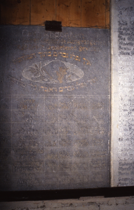 | Beerdigungen: Auf dem Friedhof befinden sich zwei hölzerne, heute durch Glas geschützte mazzewot für Josef Mosche haLevi und seine Gattin Breindel, die 1815, bzw. 1833 bestattet wurden. Die letzte Beerdigung fand am 18. Mai 1942 statt. |