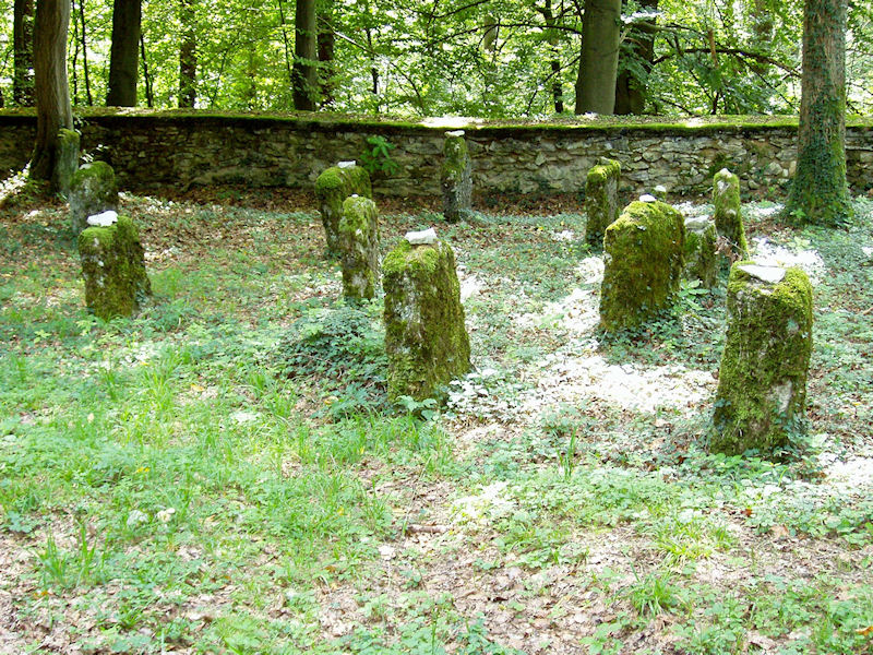 | Beerdigungen: Insgesamt haben sich nach Theodor Harburger nur noch 91 und damit recht wenige Grabsteine erhalten, darunter etwa 45 alte Steine. Die jüngsten mazzewot in der nordöstlichen Ecke stammen von 1887, 1896 und 1897. Die letzte Beisetzung auf dem Friedhof fand 1895 statt. Nach der Auflösung der Heiligenstadter Gemeinde übernahm die Jüdische Gemeinde Aufseß die Pflege des Friedhofs. 1841 erwarb die Bamberger Kultusgemeinde das Grundstück, 1943 übernahm es Berthold Schenk Graf von Stauffenberg. |