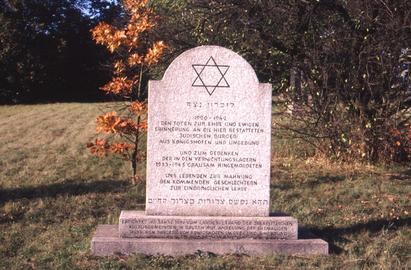 Literatur: Schwierz: Steinerne Zeugnisse jüdischen Lebens, S. 70-71; Träger, Michael: Jüdische Friedhöfe in Bayern (11) [Ullstadt-Sugenheim, Harburg, Neustädtles, Bad Königshofen]. In: Der Landesverband der Israelit. Kultusgemeinden in Bayern 10, Nr. 68 (Dezember 1995), S. 15-17, hier S. 17; Werner, Constanze (Bearb.): KZ-Friedhöfe und Gedenkstätten in Bayern. „Wenn das neue Geschlecht erkennt, was das alte verschuldet …", Regensburg 2011 [allgemein zum Thema sowie Dokumentation der in der Zuständigkeit der Bayerischen Schlösserverwaltung stehenden KZ-Friedhöfe und Gedenkstätten]; Albert, Reinhold: Jüdische Friedhöfe im Landkreis Rhön-Grabfeld, o.O. 2015 (Schriftenreihe der Kulturagentur des Landkreises Rhön-Grabfeld 1) > vollständig zitierte Buchtitel finden Sie hier |