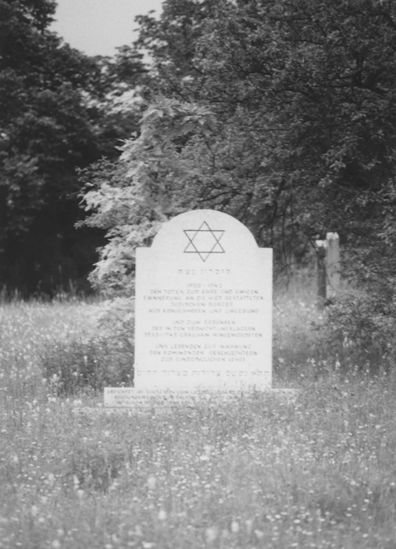 | Besonderheiten: 1974 stiftete der Landesverband eine Gedenktafel mit folgender Inschrift: „1920-1942. Den Toten zur Ehre und ewigen Erinnerung an die hier bestatteten jüdischen Bürger aus Königshofen und Umgebung und zum Gedenken der in den Vernichtungslagern 1933–1945 grausam Hingemordeten. Uns Lebenden zur Mahnung, den kommenden Geschlechtern zur eindringlichen Lehre“. |
