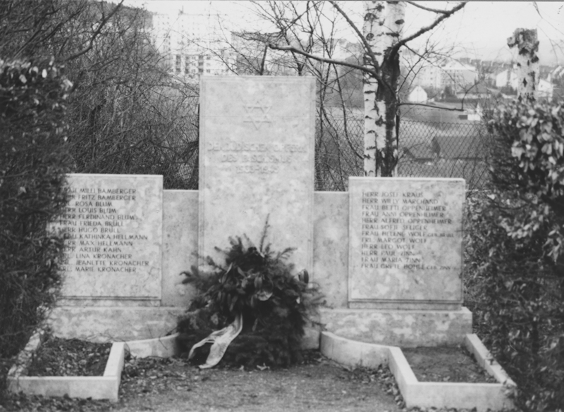 | Beerdigungen: Letzte Bestattung am 12. Januar 1940 (Carl Kraus, Kaufmann und langj�hriger Vorstand der Kultusgemeinde). Nachdem die Stadtverwaltung den neueren Teil des Friedhofs beschlagnahmt hatte, mussten die sterblichen überreste der hier beigesetzten Juden nach Burgkunstadt überfährt werden. Links des Eingangs befindet sich seit dem 7. September 1952 ein Gedenkstein mit den Namen von 25 ermordeten Juden aus Lichtenfels. |