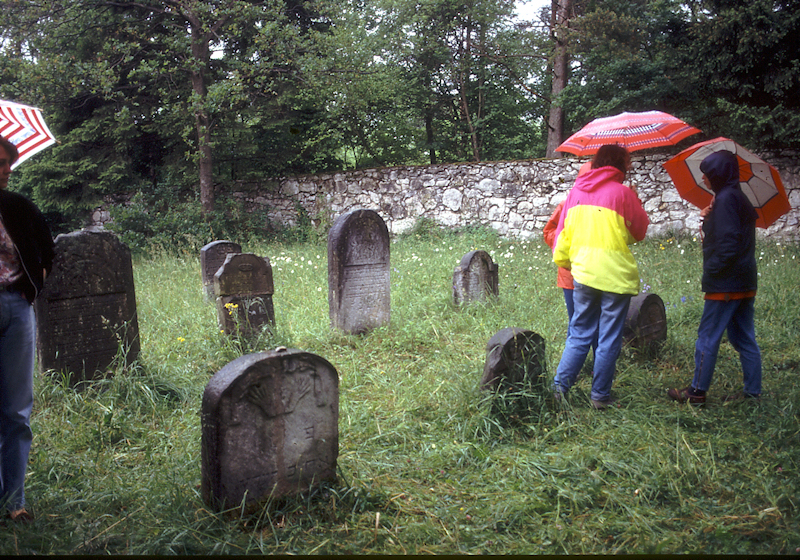 | Beerdigungen: Es sind etwa 200 Grabsteine in drei Gräbergruppen erhalten. Die letzte Beerdigung fand 1894 statt (Wolf Heller). |