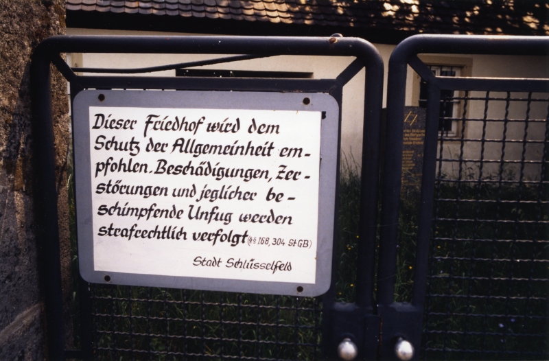 | Lage: Südlicher Ortsrand nahe der Straße in Richtung Schlüsselfeld in unmittelbarer Nachbarschaft des allgemeinen Friedhofs. |