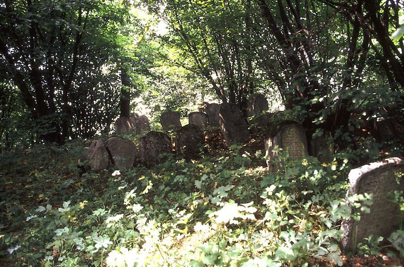 | Größe: 2150 qm. Nach st�ndigen Besch�digung des gegen Ende des 17. Jahrhunderts rund um den Friedhof angelegten Holzzauns errichtete man eine Steinmauer. Auch diese wurde durch st�ndige Bodensenkungen in Mitleidenschaft gezogen, weswegen man auf Kosten der Maxh�tte 1992 eine neue Umfassungsmauer errichtete. Eingangstor aus Metall mit zwei Davidsternen; das Friedhofsgelände steigt vom Tor aus links an. |