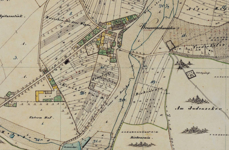 | Alter: Um 1800 (nach neueren Forschungen eventuell 100 Jahre �lter, vgl. Reinhold Albert, S. 45) ; laut einem Eintrag in das Grundbuch war der Friedhof seit dem 12. Juli 1918 zu je einem Drittel Eigentum der Kultusgemeinden Willmars, Oberelsbach und Nordheim |