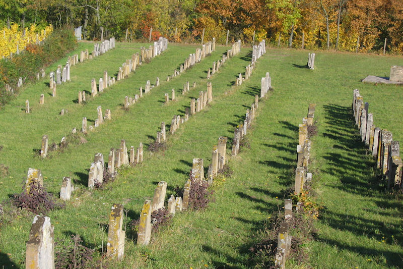 | Alter: 1816. Dem Grundbuch der Steuergemeinde Hüttenheim zufolge erwarben die Juden der Israelitischen Kultusgemeinden Bullenheim, Dornheim, Hüttenheim, Marktbreit, Nenzenheim und Weigenheim am 26. November 1816 ein Grundstück zur Einrichtung eines eigenen Friedhofs. Zuvor mussten sie die Toten in Rödelsee beisetzen. |