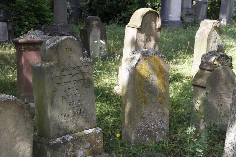 | Beerdigungen: Große ältere Abteilung mit dem ältesten Grabstein des Friedhofs aus dem Jahr 1881 (Amalie Bechh�fer); zahlreiche, teilweise recht ärmliche Gräber und Grabsteine aus der Zeit der nationalsozialistischen Gewaltherrschaft; viele neue und neueste Gräber und Grabsteine. |