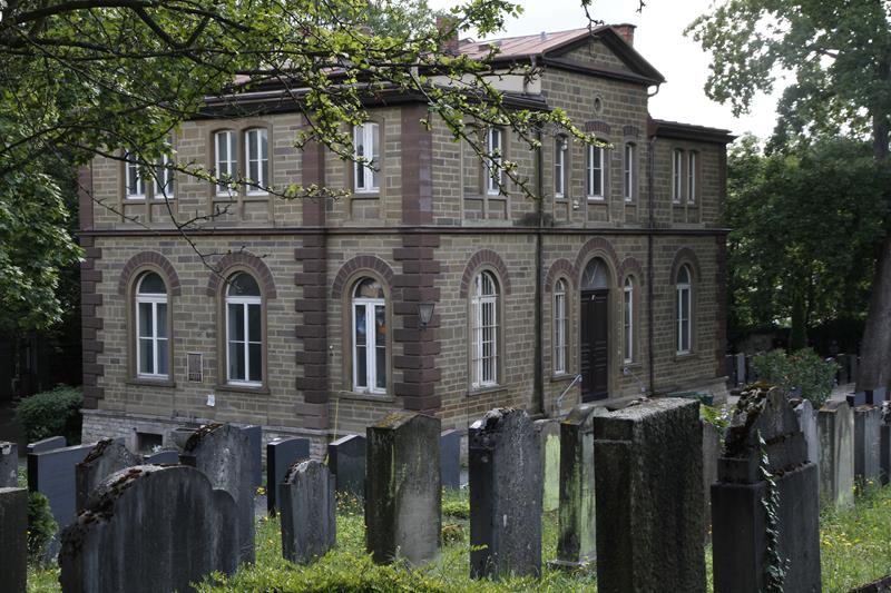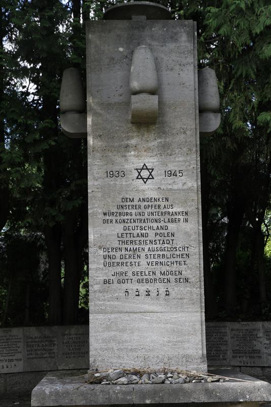 | Besonderheiten: Vor dem Haupteingang großes Friedhofshaus mit Leichen- und Tahara-Halle, Keller, Wohnung des Friedhofswärters und Aufenthaltsr�umen; in der „Leichenhalle", in der man bei der Bestattung die Gebete sprach, befindet sich auf der rechten Seite eine Mazzewa vom mittelalterlichen Würzburger Friedhof, auf der linken Seite der Gedenkschrein für die im 1. Weltkrieg gefallenen Mitglieder der Würzburger Jüdischen Studentenverbindung „Salia". Rechts des Friedhofseingangs Urnenhalle, weiter rechts von ihr Ehrenhain für die Gefallenen des Ersten Weltkrieges mit Gedenkstein von 1924. Im Ehrenhain steht ein am 11. November 1945 errichteter Gedenkstein für die in den Konzentrationslagern ermordeten Juden; die Weiherede hielt Rabbiner Neuhaus aus Frankfurt a.M. An der dem Haupteingang gegenüberliegenden Mauer Grabstätte der prominenten Familie „Hirsch auf Gereuth" in Form eines Mausoleums sowie weitere Grabstätten bedeutender Pers�nlichkeiten wie des Barons Ernst von Mannstein und seiner Ehefrau. |