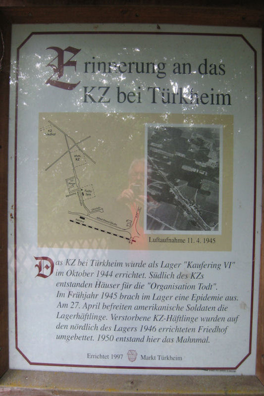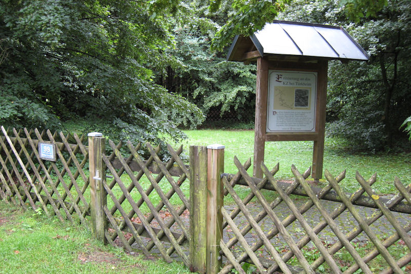 Er liegt westlich des Ortes am Wald, der Weg ist ausgeschildert. Links des Friedhofseingangs befindet sich der Gedenkstein mit der Inschrift: „1944/45 / Wir mahnen die Opfer des Au�enstelle T�rkheim des KZ Dachau". Ein mit gepflasterter Weg fährt zu einer Kapelle mit Kreuz und Magen David. Links und rechts des Weges stehen insgesamt fünf Grabsteine, darunter der für ein Kind.