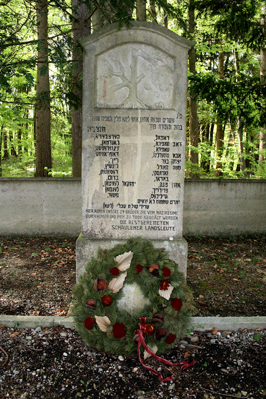 Die Anlage befindet sich im Wald rechts der Straße zwischen Utting und Holzhausen; der Weg ist teilweise ausgeschildert. Eine massive, sehr niedrige Mauer umgibt den Friedhof; am Eisentor sind zwei Davidsterne angebracht. Ein Kiesweg fährt zum Denkmal mit der Inschrift: „Hier ruhen unsere 27 Brüder / die vom Naziregime durch Hunger und Pein zu Tode gequ�lt wurden / Die restgeretteten Schaulener Landsleute". Links des Denkmals ist eine Gedenktafel in die Mauer eingelassen, rechts liegen zwei große, mit Zierstr�uchern bepflanzte Massengrüber, auf denen jeweils ein Grabstein steht.
