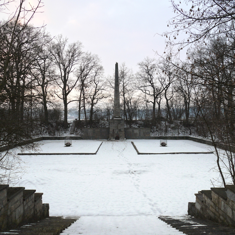 Seiten des Monuments sind jeweils drei leere Steintafeln