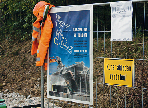 Die Installation GÖTTERBOTE des Künstlers Udo Breitenbach– zu sehen 2009 in einer Kabinettausstellung des Aschaffenburger KunstLanding – war Teil einer Kunstaktion, die im Zusammenhang mit dem Abriss des Bahnhofs Aschaffenburg stattfand, der in seiner Entstehungszeit als der schönste Bahnhof der jungen Republik galt. Mit dem Abriss des Aschaffenburger Bahnhofs wäre der keramische Fassadenwandschmuck unwiederbringlich verloren gegangen, hätte Breitenbach den „Götterboten” nicht in allerletzter Minute gerettet.