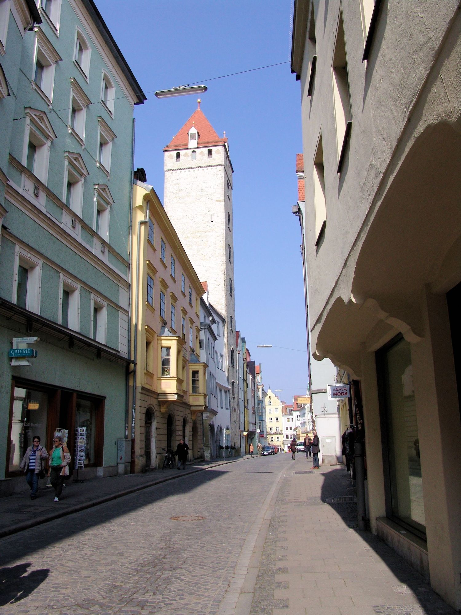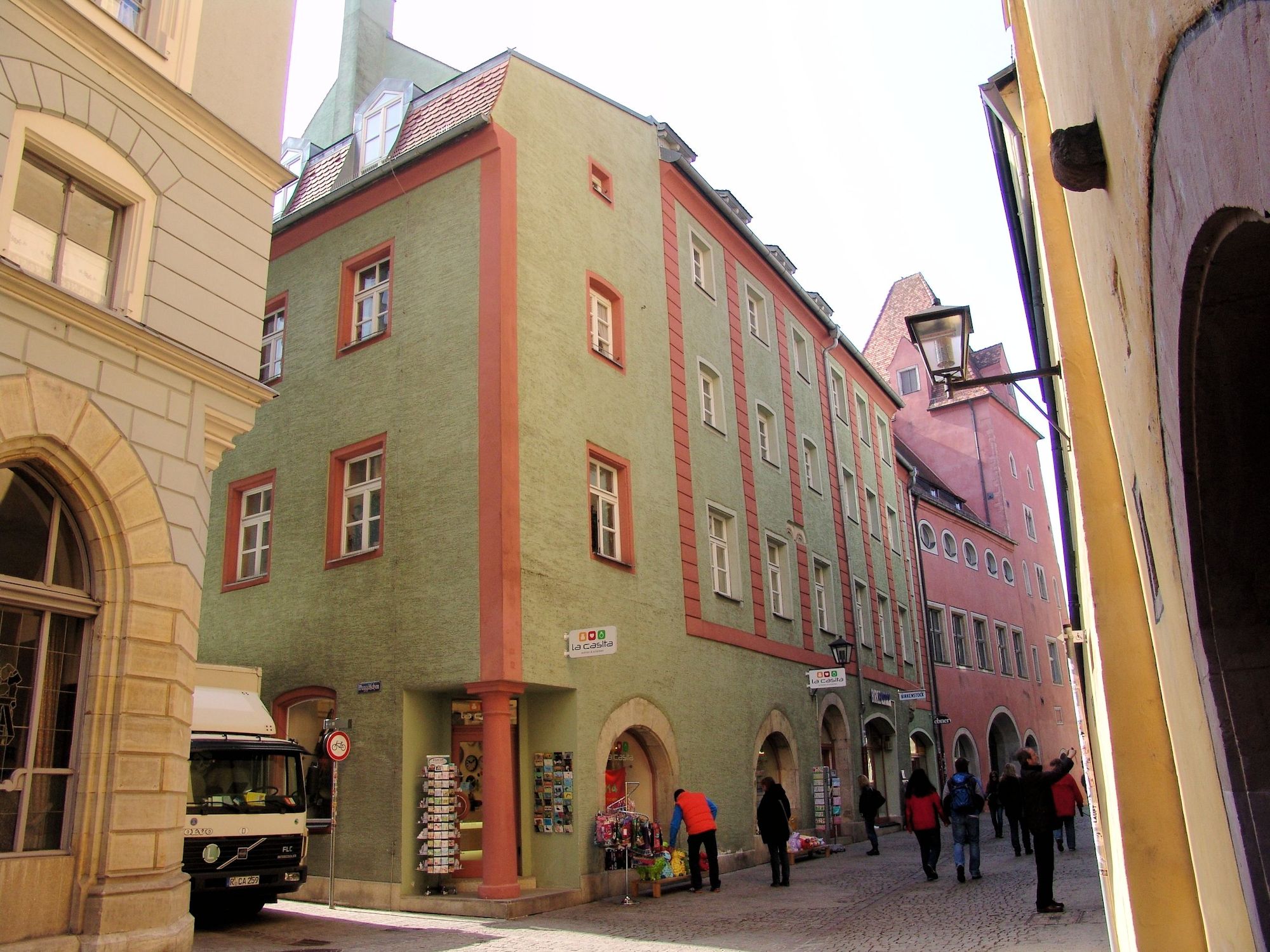 Sie stehen in der Wahlenstraße. Diese Straße trägt einen der ältesten bezeugten Straßennamen Regensburgs. Unter Walchen oder Welschen verstand man die Italiener. Die Bewohner der Straße waren aber keine Italiener, sondern Regensburger Kaufleute, die mit Italien handelten. Besonders Venedig hatte mit Luxusprodukten aus dem Orient ein attraktives Warenangebot. Die reichen Regensburger Kaufleute handelten nicht nur mit Italien, sie brachten auch die italienische Architektur mit. Besonders die oberitalienischen Kaufmannspaläste mit ihren Wehrtürmen hatten es ihnen angetan. Und so errichteten sie sich Paläste, wie man sie kaum in einer Königsburg, sicher aber nicht in einfachen Ritterburgen fand.