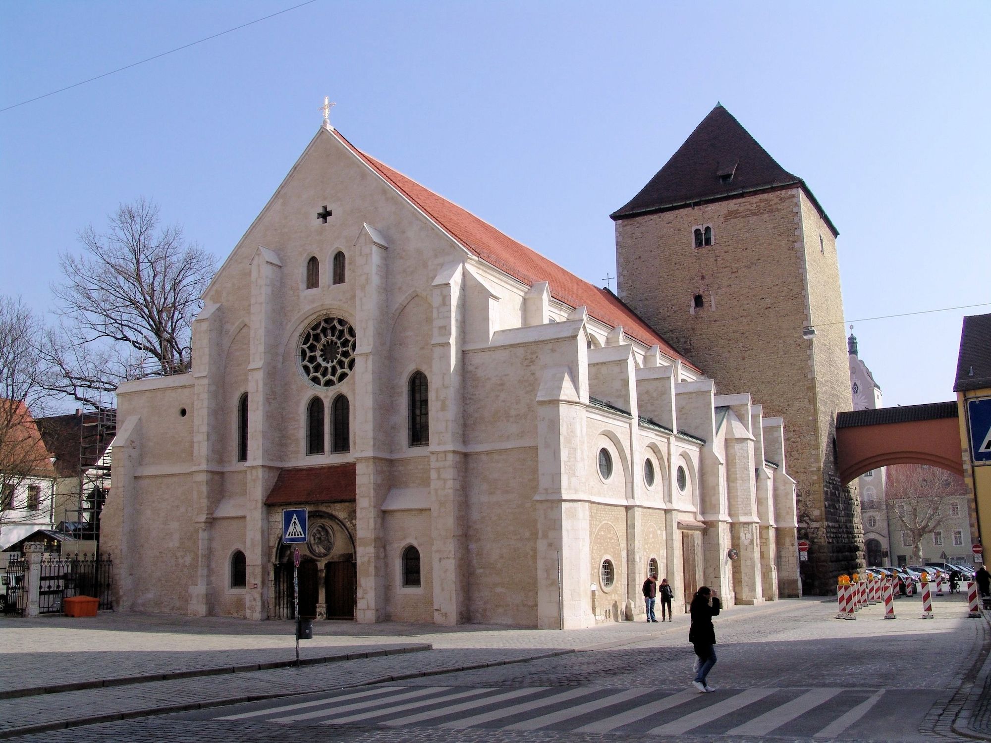 Dieser Platz und die Kirche sind verhältnismäßig jung im Vergleich zum Rest von Regensburg. Bis 1519 befand sich hier das jüdische Viertel. Juden haben sich vermutlich schon sehr früh in Regensburg angesiedelt. Seit dem 13. Jahrhundert schloss man sie von zahlreichen Berufen aus. Doch eine Aufgabe ließ man ihnen: Geld zu verleihen gegen Zins. Denn Christen sollten dies nicht tun.