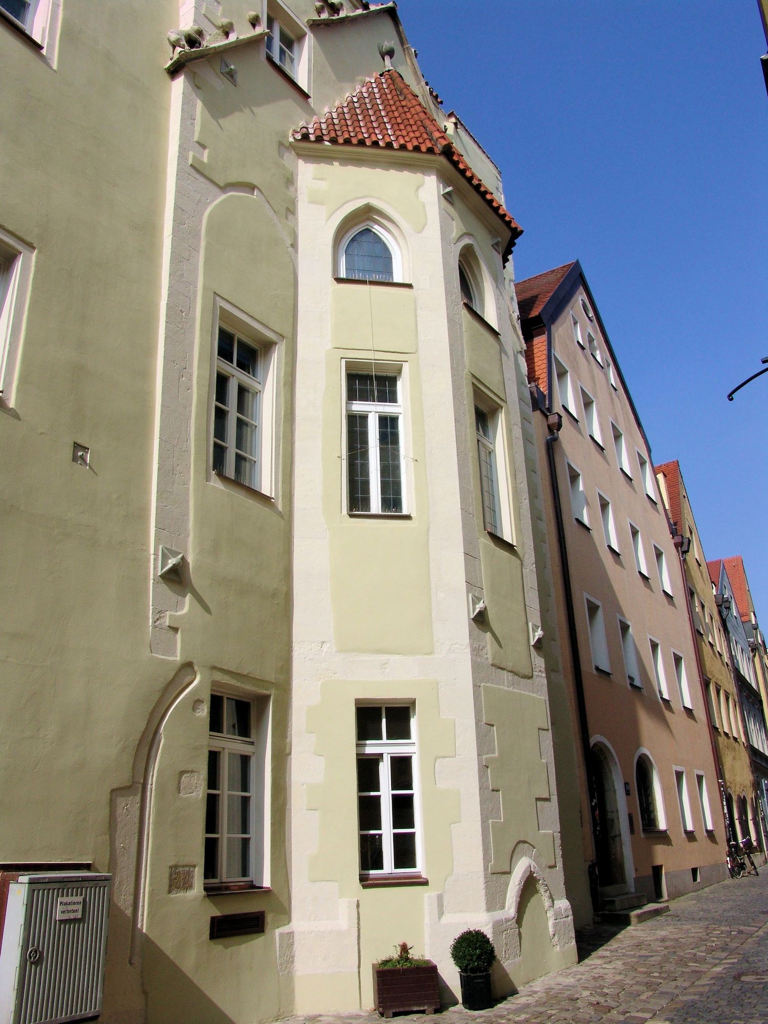 Die Stadt Regensburg – heute UNESCO Welterbe - hat außergewöhnlich viel von ihrem mittelalterlichen Aussehen bewahrt, auch wenn die Gebäude im Lauf der Jahrhunderte immer wieder umgebaut wurden. Einiges jedoch blieb fast so erhalten wie es zu Zeiten Ludwigs des Bayern ausgesehen hat. Eines der schönsten Beispiele sehen Sie vor sich: ein mittelalterliches Wohnhaus. Als das Gebäude in den 1970er-Jahren saniert wurde, fand man unter dem Putz Teile der ehemaligen Fassadenmalerei. Diese war so gut erhalten, dass man sich an eine vollständige Rekonstruktion wagen konnte - und so hat man jetzt einen guten Eindruck von den Farbigkeit der mittelalterlichen Häuser. Der Name Kepler-Haus geht übrigens darauf zurück, dass hier der berühmte Astronom Johannes Kepler kurzzeitig wohnte.