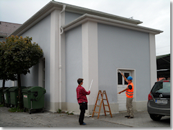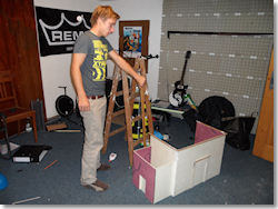 Bilder rechts: Wie viel Arbeit in einer Ausstellung steckt, erfuhr das P-Seminar bei einem des HdBG in Augsburg. Die Schüler/innen stellten ihre ersten Ideen vor und holten sich wertvolle Tipps bei den Mitarbeitern des HdBG. Weitere Anregungen konnten Sie auch bei dem Besuch der Olympia-Ausstellung in München sammeln, die selbst von Studenten unter Anleitung von Dr. Kirmeier und Prof. Dr. Kramer entwickelt worden ist. Allmählich steht das Konzept und die Führungslinie für die eigene Ausstellung. Doch es bleibt noch jede Menge Arbeit zum Beispiel beim Nachbau des Königs-Pavillons, der einst Ludwig II. in Rimsting am Herrenchiemsee begrüßte und heute am Bahnhof Prien steht.