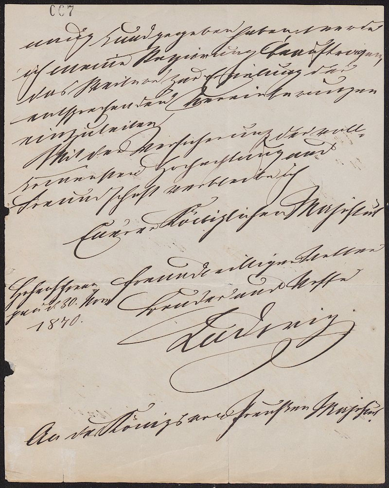 In die Enge getrieben, verfasste König Ludwig II. am 30. November