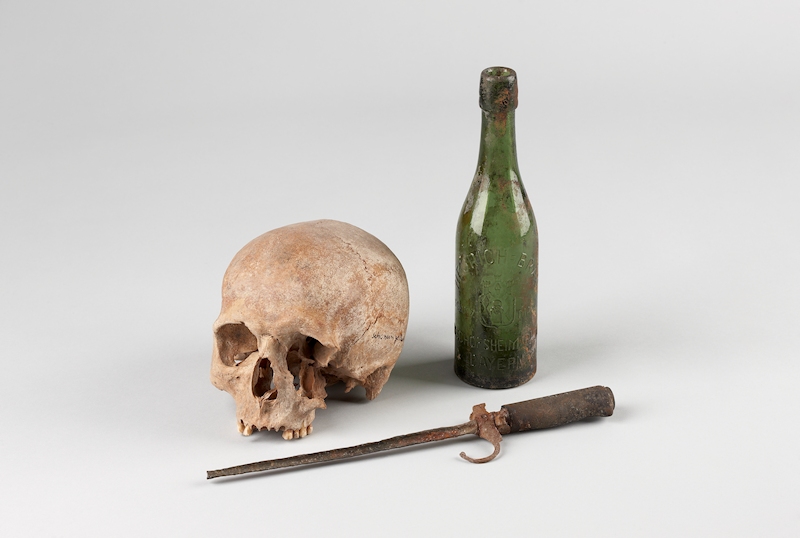 Schweinfurt. Menschlicher Schädel, Bajonett, 18. Jahrhundert(?),