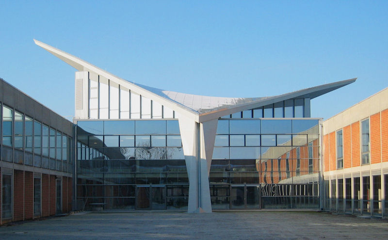 erscheint die Hyparschale über der Eingangshalle, die