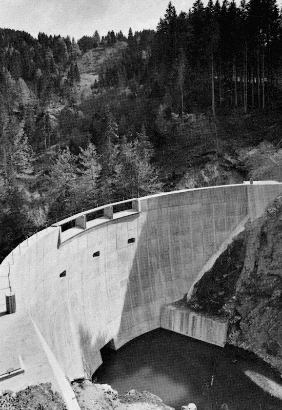 Die Bogenstaumauer bei Sonthofen im Oberallgäu ist in